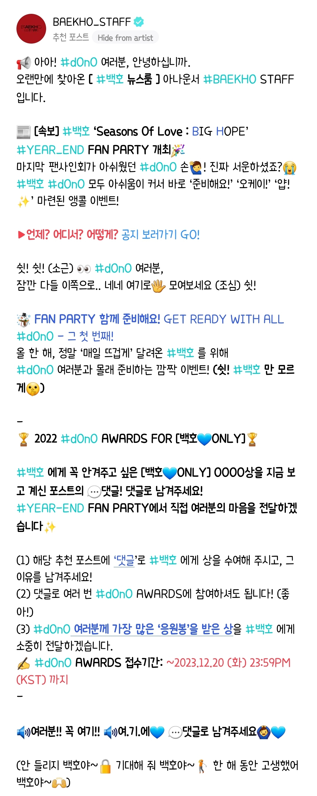✔ 필수 해시태그 @BAEKHO_PLEDIS #BAEKHO_goodbye2022