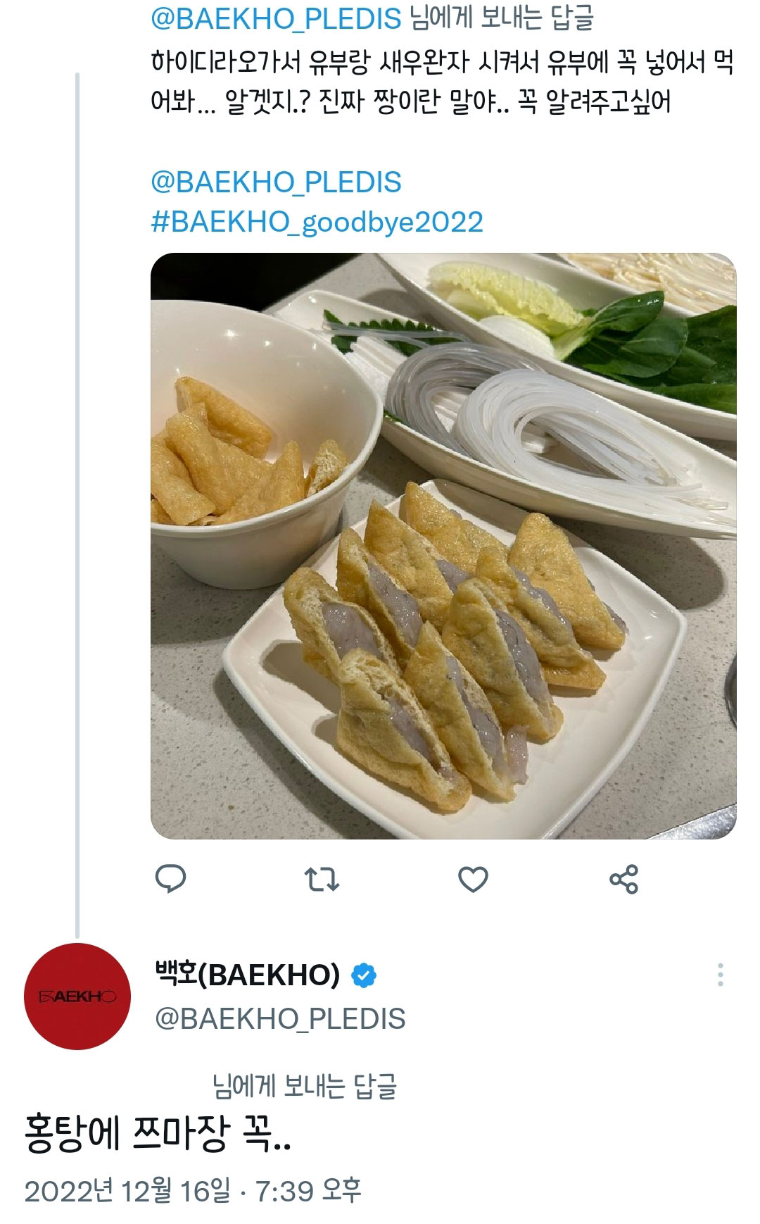 — 백호(BAEKHO) (@BAEKHO_PLEDIS) December 16, 2022